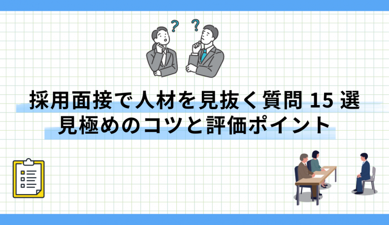 本記事で紹介した15の質問とカテゴリ別の視点は、候補者の過去の行動、思考のクセ、価値観、カルチャーフィット、そしてリスク要因までを立体的に捉えるための“判断軸”として役立ちます。