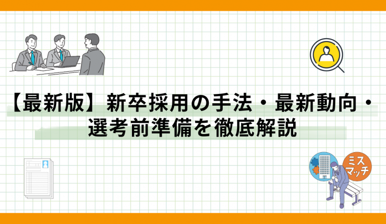 新卒採用の最新動向から、選考前に準備すべきポイント、主要・最新の採用手法までを網羅的に解説。採用計画の立て方や母集団形成、評価基準の考え方など、採用活動を成功に導くための実務に役立つ情報を、初めての担当者にもわかりやすくまとめています。